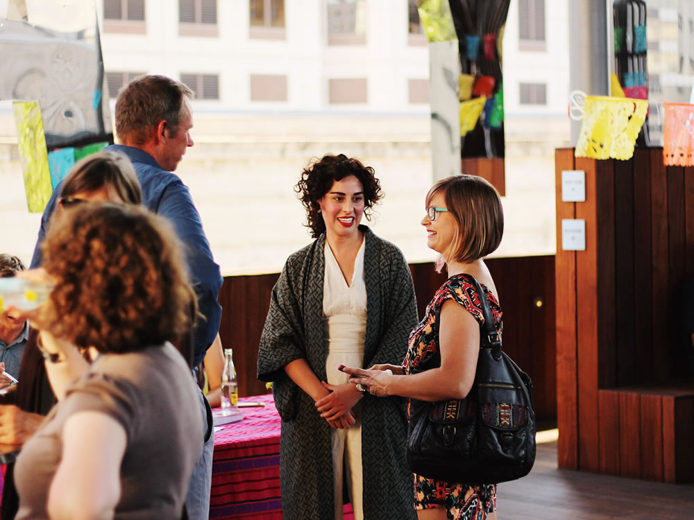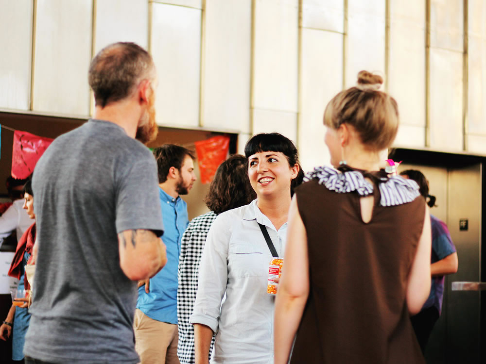 The TX★17 Road Trip kicked off with a potluck on the rooftop of The Contemporary Austin, our partner organization. Guests greeted Curator and Artistic Director Leslie Moody Castro and shared food and drinks together.