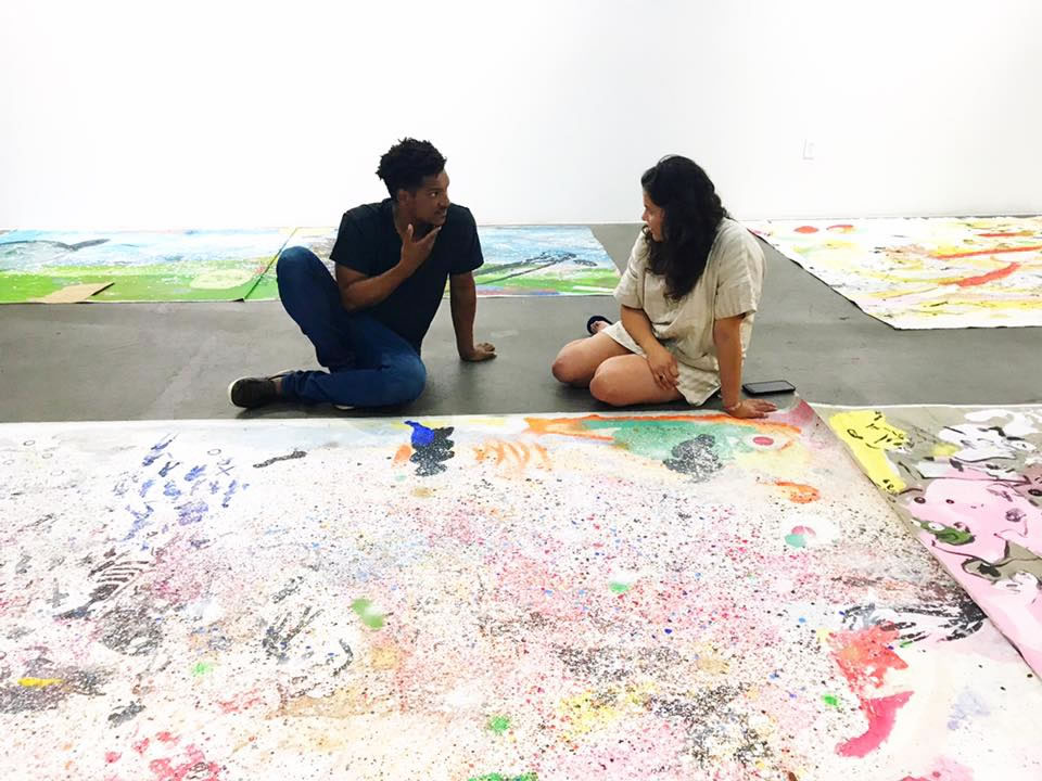 As I stood holding up the canvas I was interested in, Angelbert ran to grab a large tube. To explain one he needed to start with another, and I followed him out into the hallway as he unrolled a canvas at least 25 feet long. Angelbert explained that the piece was his transition into being an artist, and the moment in which he began to own his voice. We sat together on the floor examining the marks in the canvas, and talking about his history and trajectory as an artist, and where he plans on taking the work in the future, but even as Angelbert pulled out piece after piece I was aware of the vulnerability in the work, and I could sense that he was opening much more than work, but rather his own personal history. We talked openly and with a shared sense of mutual trust, and by the time it was time to leave it felt like we were old friends.