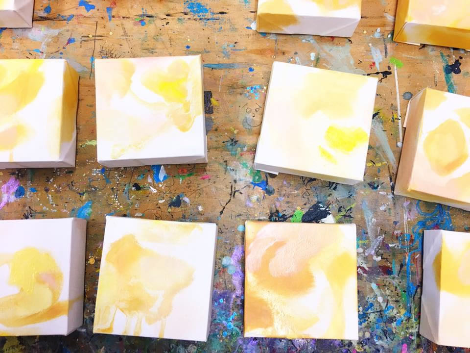 I drove over to Derrick’s studio the next morning before hitting the road once again. I could easily see that Derrick was serious about proving he is a professional artist and educator to his students. When I walked in I was astounded by the amount of work Derrick was producing, and he pulled out painting after painting to show me his process and how it has developed. Derrick mainly works with painting on traditional canvas with elements of collage and a repeated circle motif, the work is intuitive but Derrick’s finesse with the paint was obvious. Derrick works on a flat surface rather than an easel, and hovers above the canvas as he paints, and physically moves the canvas in order to push the paint into the composition. Talking with Derrick and seeing his practice was a welcome relief, balancing the life of an educator, and being an artist with a professional practice is difficult, and Derrick is not just practicing but he is also shaping careers.